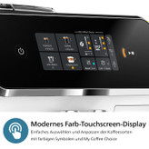 - تنظیمات اولیه: از طریق پنل لمسی، تنظیمات اولیه مانند درجه آسیاب و غلظت قهوه را تعیین کنید. در صورتی که از فیلتر AquaClean استفاده میکنید، آن را در مخزن آب نصب کنید.