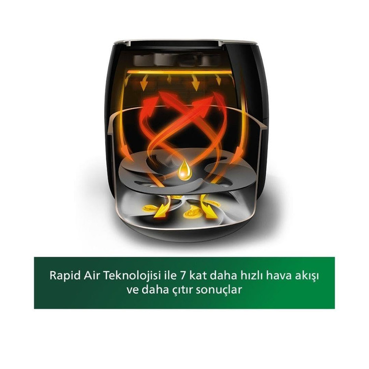 Philips HD9650 مجهز به سیستمهای بسیار حرفهای برای سرخ کردن، گریل کردن و پخت بهتر مواد غذایی با حفظ ارزش آنها است. ظرف اصلی این سرخ کن بدون روغن فیلیپس فضای کافی برای پخت دو مرغ یا دو بسته سیب زمینی خلالی را.