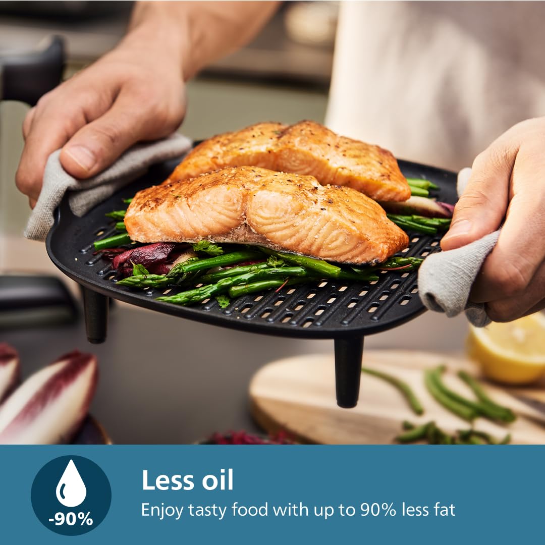 سرخ کن بدون روغن فیلیپس مدل HD9875 از سری 7000 شما را به دنیایی از وعده های غذایی سالم، خوشمزه و خلاقانه دعوت می کند. این سرخ کن بدون استفاده از روغن و توسط حرارت گرم غذاهای شما را همانطور که دوست دارید با 99٪ چربی کمتر طبخ می کند. شما می توانید بدون نیاز به روغن، طعم لذیذ هر غذا را بچشید. زیرا این دستگاه از هوای داغ برای ترد شدن و پخت غذاهای سالم مورد علاقه تان استفاده می کند. اگر اضافه وزن و چربی خون بالا دارید و یا به دنبال پیروی از سبک زندگی سالم با رژیم غذایی مناسب هستید، سرخ کن philips HD9875 پیشنهاد عالی برای شما است.