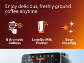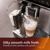 این محصول دارای کف کننده شیر خودکار لاته گو با ثبت اختراع برند فیلیپس می باشد. اسپرسو ساز فیلیپس دارای قطعات فوق اتوماتیک است. این قهوه ساز اتوماتیک با قدرت بالا، توان 1500 وات و فشار بخار 15 بار؛ هر دفعه تعداد 12 فنجان نوشیدنی گرم مانند آمریکانو، اسپرسو، اسپرسو لانگو، ریسترتو، قهوه، کاپوچینو، کافه لاته، کافه کرما، لاته ماکیاتو را بدون دردسر و زحمت در کم ترین زمان ممکن برای شما حاضر می کند.