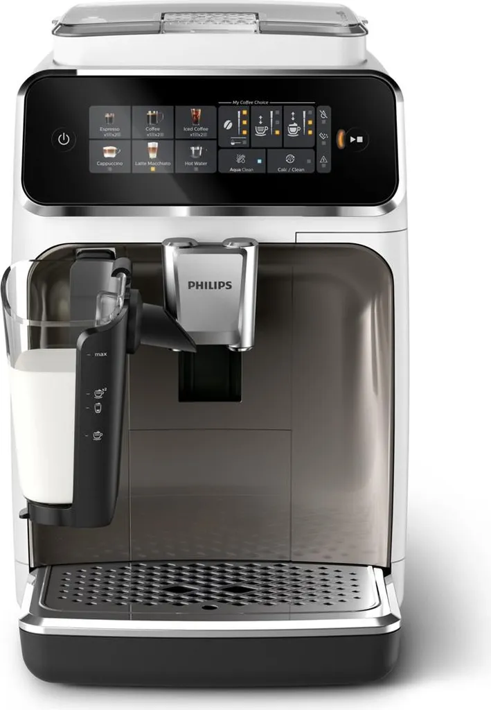 اسپرسوساز philips ep3349 قابلیت تهیه 6 نوع نوشیدنی متنوع را دارد که شامل اسپرسو، کاپوچینو، لاته ماکیاتو، قهوه سیاه، آیس کافه و آب داغ میشود. هر کدام از این نوشیدنیها بهراحتی و با لمس یک دکمه آماده میشوند. سیستم LatteGo که یکی از ویژگیهای برجسته این دستگاه است، به شما امکان میدهد تا فوم شیری نرم و یکدست را بهسرعت تهیه کنید، چه برای نوشیدنیهای بر پایه لبنیات و چه شیرهای گیاهی مانند شیر بادام. این سیستم با استفاده از فناوری چرخشی خاص، فوم شیر با کیفیت بالا تولید میکند که تجربهای مشابه با کافیشاپها را به ارمغان میآورد. برای نوشیدنیهای سرد مانند آیس کافه، کافی است یخ به فنجان اضافه کنید و از طعم غنی قهوه خنک لذت ببرید.