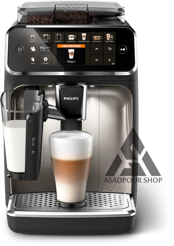 اسپرسوساز اتوماتیک فیلیپس مدل EP5447 یک دستگاه بسیار باکیفیت و حرفه ای شرکت فیلیپس می باشد، که همه احتیاجات شما را در جهت انجام همه مرحله های تهیه نوشیدنی موردنظر برطرف کرده است و بسته به توانایی هایی که دارد در سطح بالا می تواند یک کافی شاپ کوچک را به خانه شما انتقال دهد. از کوچکترین کار آماده نمودن یک فنجان قهوه یعنی آسیاب کردن دانه ها گرفته تا تهیه کردن یک نوشیدنی خوش طعم همه این ها به وسیله این دستگاه اسپرسو ساز 5447 به شکل تمام اتوماتیک قابل انجام خواهد بود.